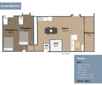 - Au Rdc, vous aurez la possibilité de créer 1 lot de type T3-68m²